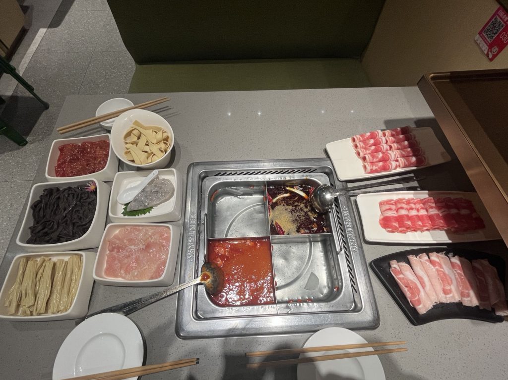 我俩把电车骑过来之后又等了一会,就到点啦,俺俩就开炫啦,下面附上俺俩吃的图片啦,好想再和俺乖乖一起吃火锅 呜呜呜呜